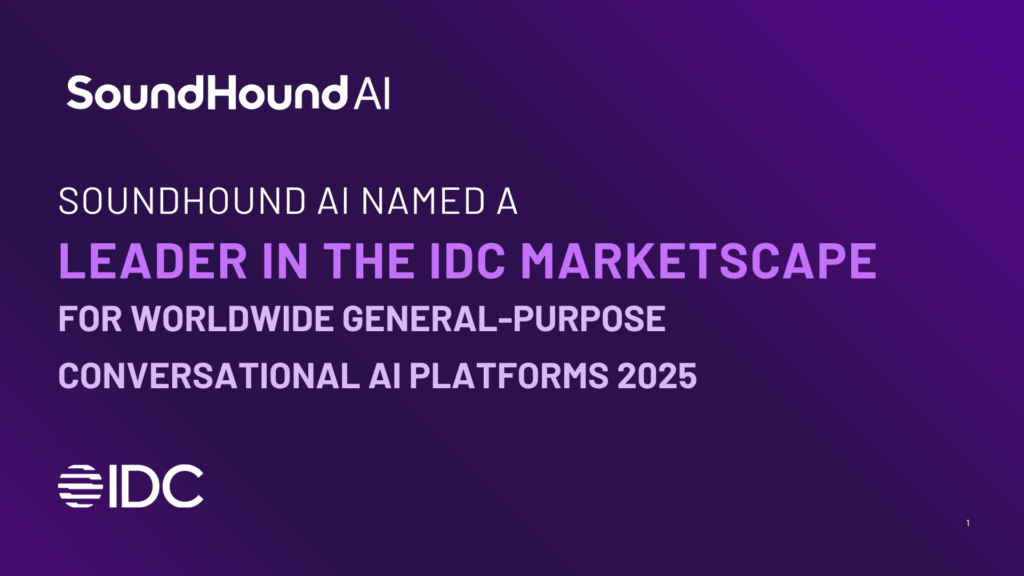 Read the SoundHound AI excerpt of the IDC MarketScape: Worldwide General-Purpose Conversational AI Platforms 2025 Vendor Assessment here.